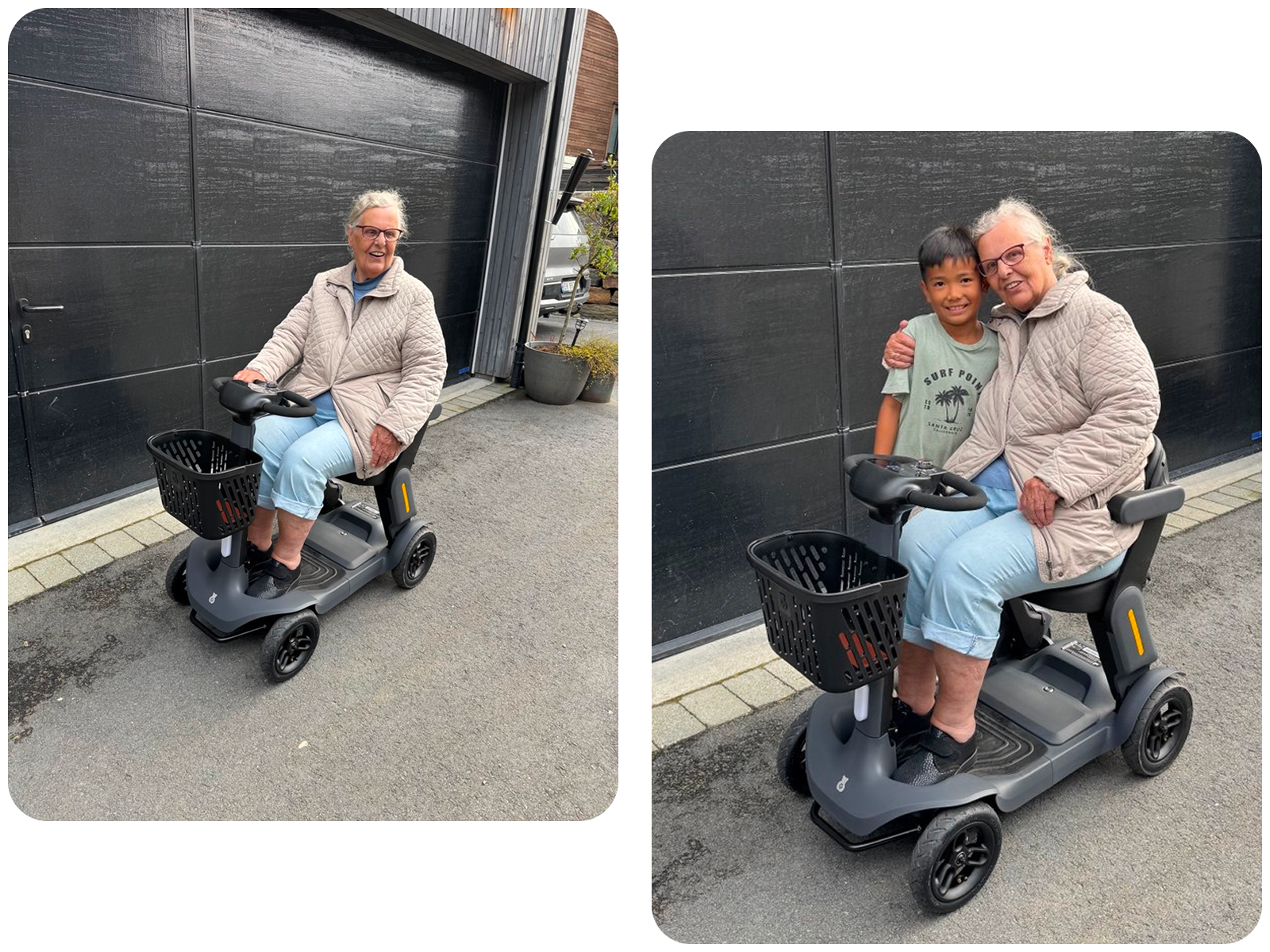 " Perfekt scooter for meg. Nå kan jeg endelig komme på besøk til barnebarna. Lettkjørt, stabil, kan kjøre lange turer. Også veldig god pris!! Anbefales!! "
